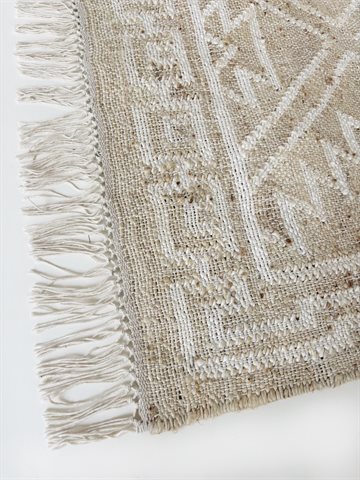 Teknik: Håndvævet geometrisk mønster design, plantefarvede jute-fibre
