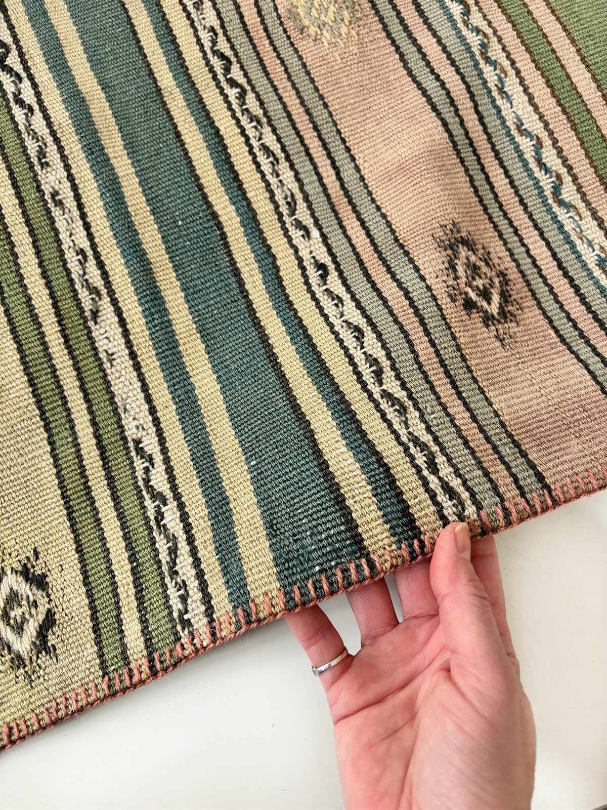 Teknik: Håndvævet med stribet mønster med broderier
